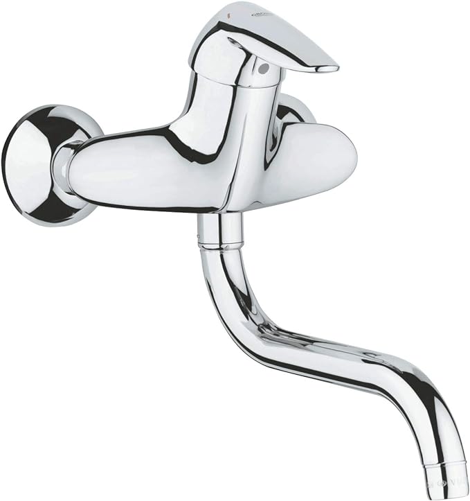 wall mounted GROHE SilkMove 46 mm ceramic cartridge GROHE StarLight chrome finish adjustable flow rate limiter swivel tubular spout with stop limiter mousseur S-unions optional temperature limiter (46 308 000)